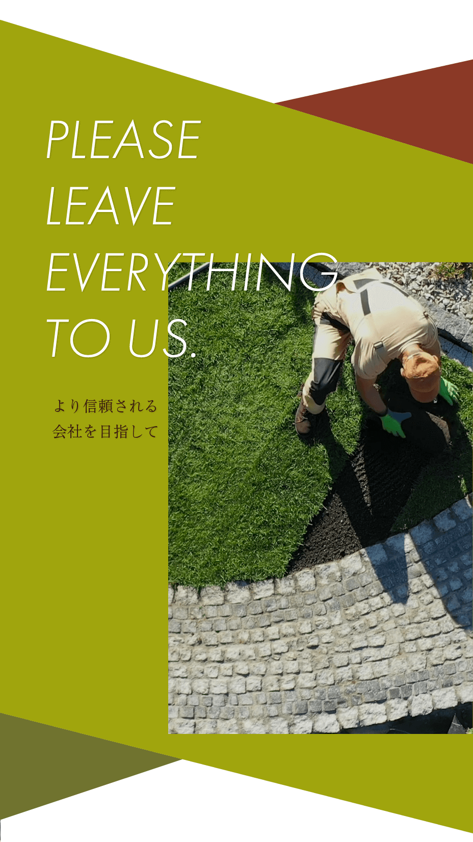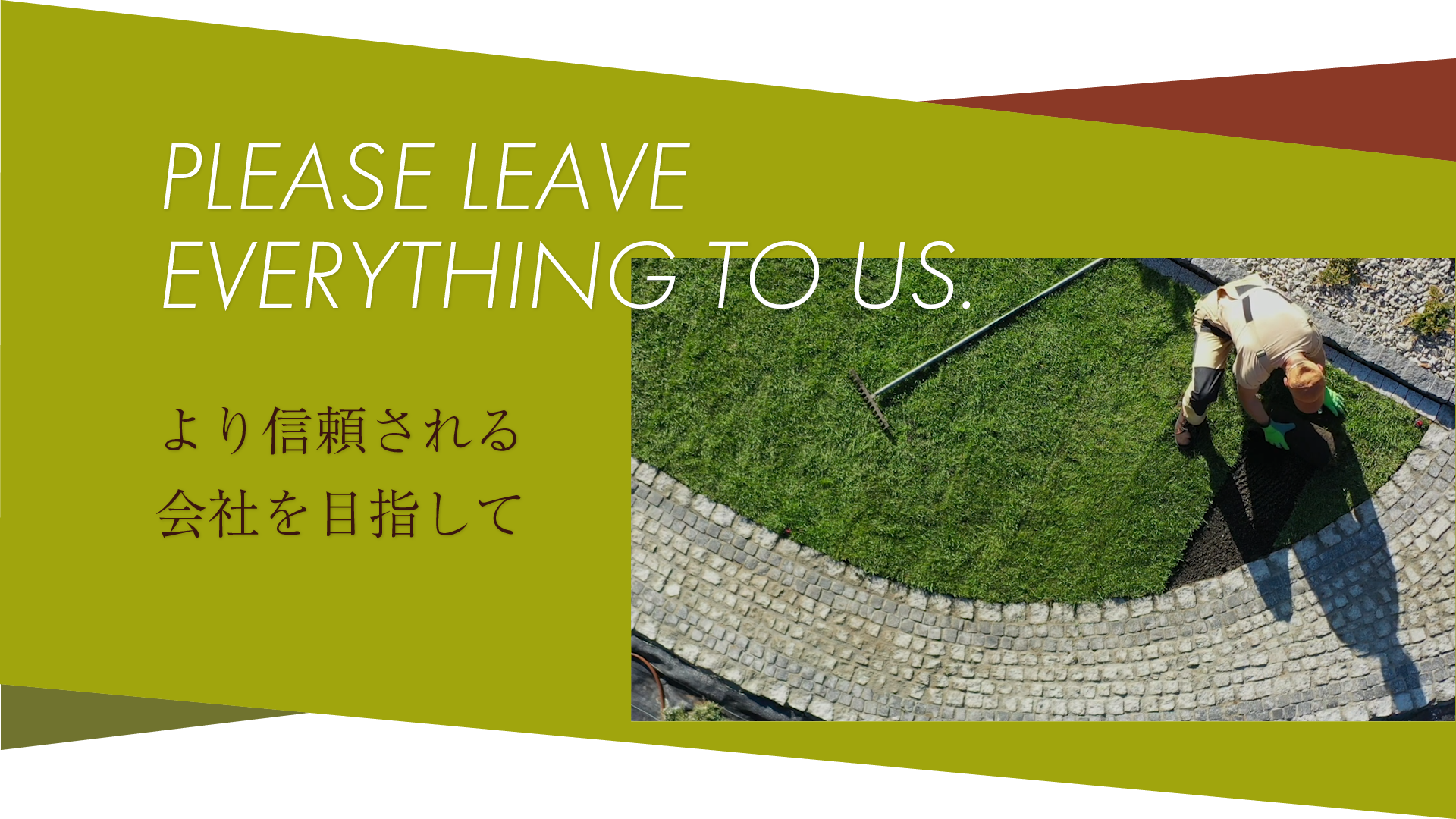 株式会社○○造園では、発注いただく方々、従事される方、すべての方から感謝していただける仕事を行うべく、最大限の努力を惜しまず業務にあたっております。